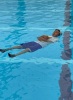 1年生の体育の授業で、水泳の授業を行い、この日は着衣泳を体験しました。いかに浮力を確保するかの体験では、ポテトチィップスの袋を胸に抱き、見事に浮いていました。